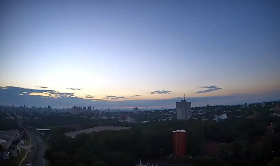 O Simepar prevê dia de céu claro, com temperatura máxima de 32˚C, umidade relativa entre 46% e 89% e pôr do sol às 18h41. Para amanhã a previsão é de tempo nublado com pancadas de chuva.