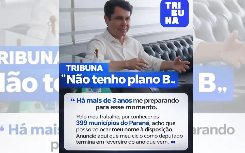 Há três dias, em suas redes sociais, o presidente da Assembleia Legislativa do Paraná, Alexandre Curi (PSD), republicou esta postagem. A frase virou um mantra nos últimos meses. Por isso, desconfia-se com razão de que a possível confirmação de que disputará o Senado seja uma “reserva técnica”.