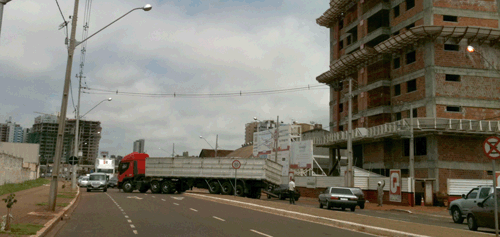 Leitor envia foto de caminhão subindo em cima do canteiro central da avenida Horácio Raccanello, em Maringá, hoje às 11h50. “Esta é uma prática bem comum nesta avenida, inclusive há vários locais onde o meio-fio está totalmente danificado por conta do peso desses veículos. Existem prédios em construção em outras regiões, como por exemplo na avenida Tiradentes. Será que por lá é permitido isto também? Este não é o único problema desta avenida. Além dos caminhões subirem no canteiro central para manobrarem, quase todo dia caminhões que trazem concreto para obras param em fila dupla ou colocam cone impedindo uma faixa inteira da via causando grande transtorno e congestionamento. Cadê a Setran para autuar estas infrações?”, cobra.