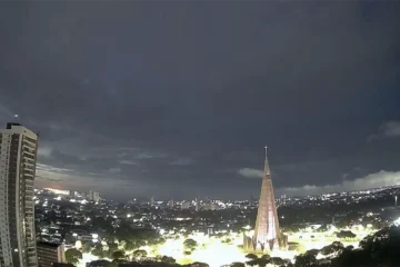 Aconteceu ontem à tarde, na avenida Brasil, esquina com rua José de Alencar, em Maringá: sem encontrar estacionamento, uma mulher estacionou sobre o canteiro central, de onde as vagas espinhas de peixe foram retiradas. Foto/arte Maringá da Deprê/Lucyana Gonçalves.
