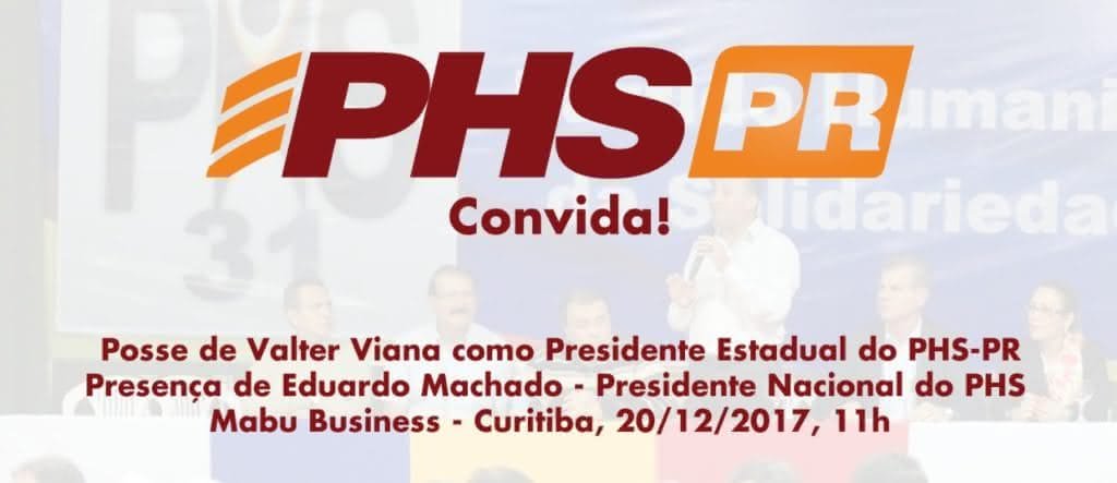 Posse de Viana será quarta Angelo Rigon 8 anos atrás O convite marca a posse de Valter Viana, de volta como presidente estadual do PHS, quarta-feira, às 11h, em Curitiba. O presidente nacional estará presente.