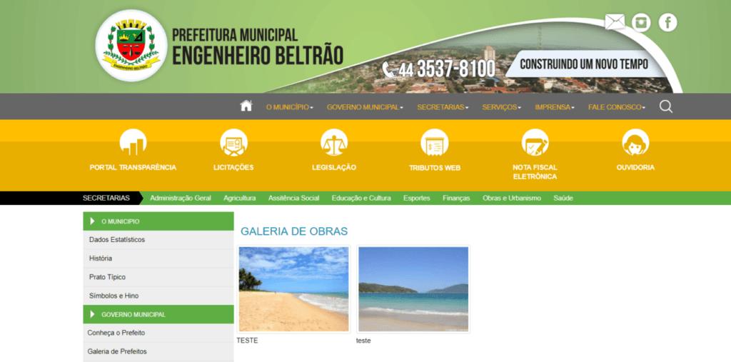 Quem entra na aba “Obras” do site da Prefeitura de Engenheiro Beltrão, região de Campo Mourão, pode até acreditar que o prefeito Rogério Rigueti Gomes está querendo dotar a cidade de praia.