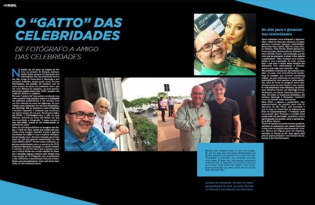 O ator e cantor Julio Rocha é capa da edição de fevereiro da revista Night e Cia, de Itajaí (SC). Adriano Gatto aparece em reportagem de duas páginas.