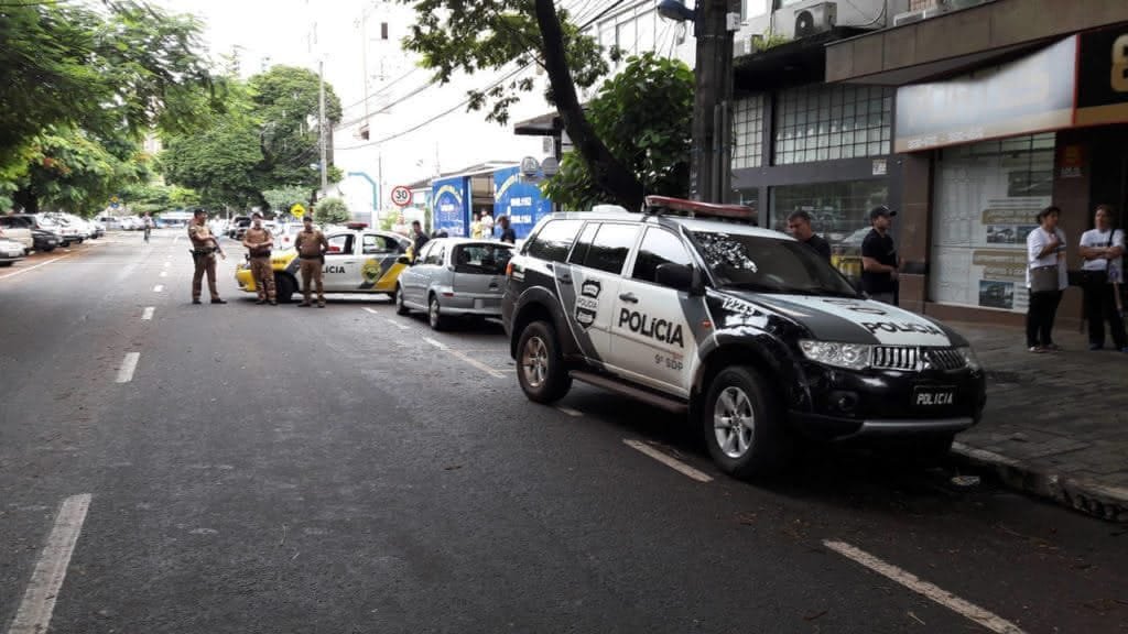 Policiais militares e civis acompanham a manifestação na frente do escritório político da família Barros. Os manifestantes invadiram a área de estacionamento.