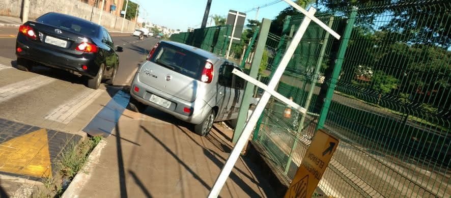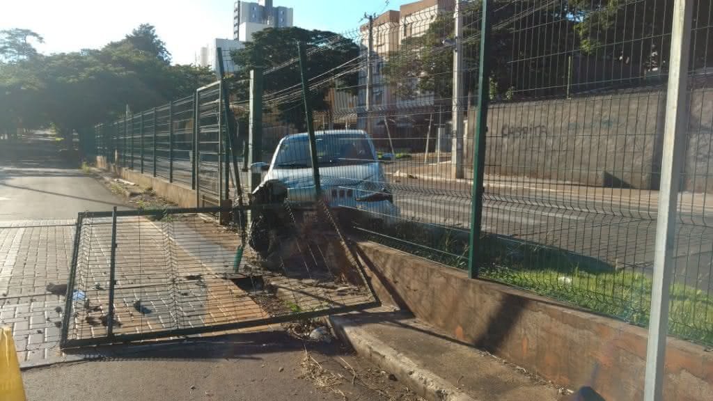 Por volta das 6 horas da manhã de hoje uma motorista perdeu o controle do veículo e bateu na grade da Universidade Estadual de Maringá, na rua Professor Itamar Orlando Soares, na Zona 7.