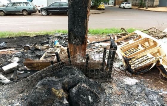 ‘Hoje de manhã vi que não adianta mais pedir à prefeitura para acabar com os lixões da av. Sophia Rasgulaeff. Pois minha tristeza hoje foi ver que além do lixão na av. Sophia esquina com a Sete de Setembro, alguém passou lá e colocou fogo no lixo, que era composto em maior parte por móveis. Resultado, além do lixo, a grevílea também está se incendiando na base… Minha revolta foi tanta que não tive coragem na hora de tirar uma fotografia. Com certeza, daqui a pouco vem a pá-carregadeira para retirar aquilo tudo e mais uma vez dar uma raspada criminosa na pobre árvore, cuja copa rala perto das demais verdinhas, já anuncia sua tristeza pelo fim da vida se aproximando a cada semana… Resumo da ópera: essa administração ‘ulisseana’ já demonstrou que só cuida do centro da cidade; tudo igualzinho às demais que passaram… E nem vou aqui falar que o culpado maior é o povo sugismundo que escolheu viver daquele jeito, perto de lixões em avenidas. Tenho nojo e vergonha, do lixo e dessa gente porca!”.