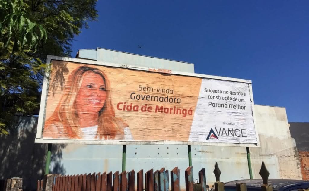 Boas-vindas Angelo Rigon 8 anos atrás Outdoors parabenizando a agora governadora Cida Boghetti, assinados pela Avance Construtora e Incorporadora, foram espalhados hoje em vários pontos de Maringá.