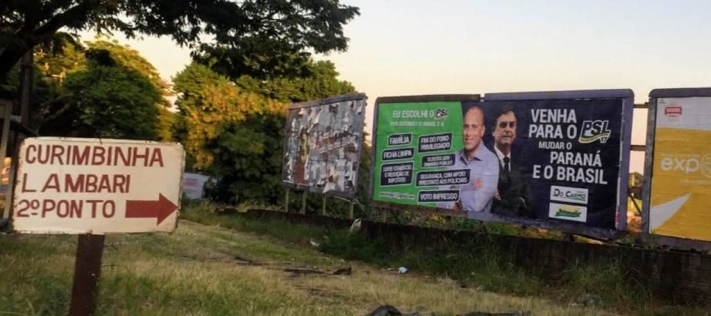 O vereador Paulo Rogério do Carmo e o deputado federal Jair Bolsonaro aparecem em outdoors espalhados por Maringá, que falam em mudar o Brasil e o Paraná.