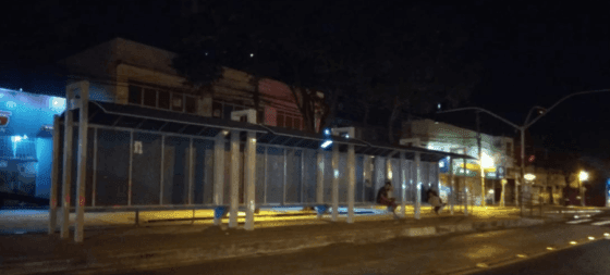 Leitor que utiliza diariamente a avenida Morangueira fez a foto e observou que os pontos de ônibus no terminal da praça Ouro Preto fica sem iluminação, deixando usuários praticamente no escuro.
