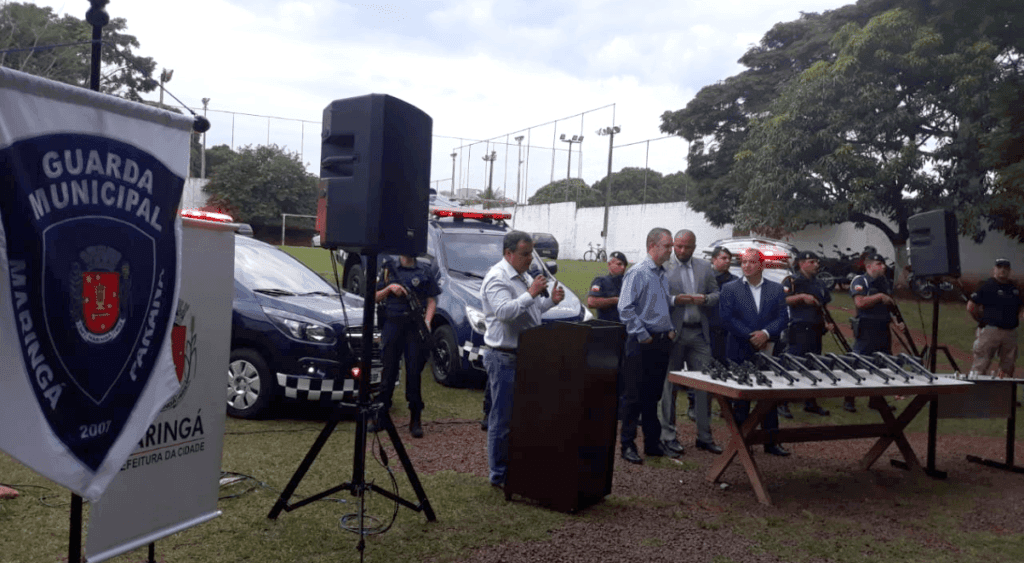 Armas apresentadas Angelo Rigon 8 anos atrás O secretário municipal de Segurança de Maringá, coronel Padilha, fala durante a apresentação, feita há pouco, de parte do armamento adquirido pela Prefeitura de Maringá para a Guarda Municipal. (Foto Agnaldo Vieira)