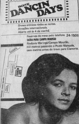 Acima, o local em outubro de 2014, quando a boate já não estava em funcionamento. Abaixo, o terreno já sem o prédio, em foto tirada ontem, e um anúncio da boate em maio de 1982 no jornal O Diário do Norte do Paraná.