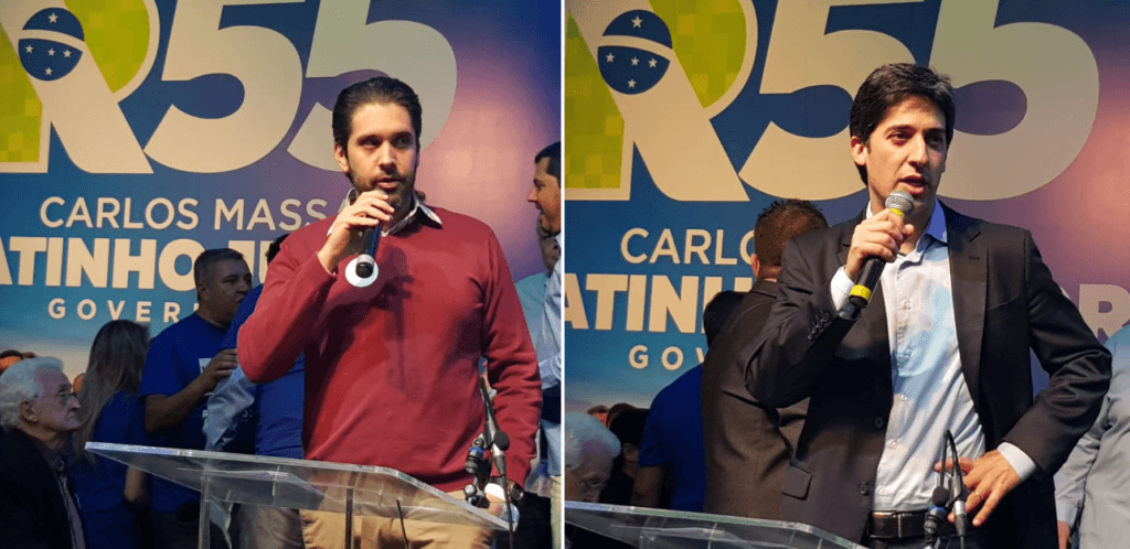 Em Curitiba, na convenção do PSD, a manifestação dos presidentes estaduais do partidos da aliança pró-Ratinho Junior: o maringaense Rodrigo Pina, do PHS, Valdemar Jorge, do PRB.