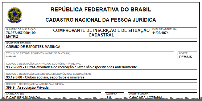 O Grêmio de Esportes Maringá – fundado em 1974 e que é detentor do último título estadual do futebol profissional local, de 77 – ainda existe como clube, como mostra o comprovante acima.