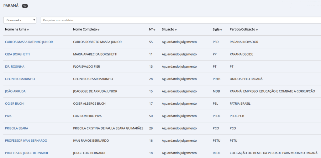 O sistema de divulgação de candidaturas do TRE-PR incluiu ontem o nome do advogado Ogier Buchi entre os que requereram registro como candidato ao governo.