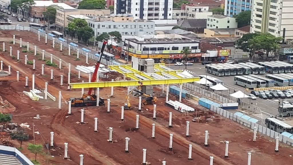 Em andamento Angelo Rigon 7 anos atrás Prossegue, na região central de Maringá, a montagem da estrutura metálica do terminal intermodal urbano.