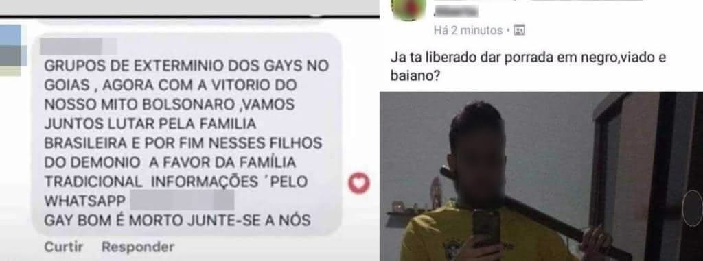 Em Goiás, a polícia investiga um comentário em que um internauta convoca outras pessoas para formar um “grupo de extermínio dos gays” no estado. Em um grupo, internauta pergunta se já está liberado dar porrada em “negro, viado e baiano”. A troca de ofensas e provocações continua a toda.