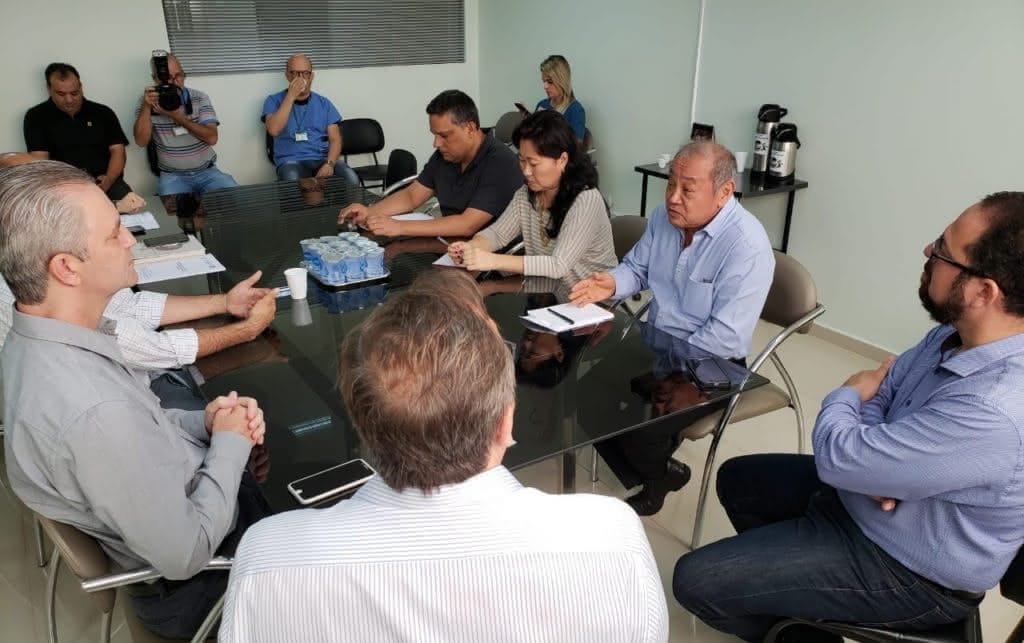 O médico Vicente Kira, diretor do Hospital Universitário Regional Said Ferreira, de Maringá, conversa com o prefeito Ulisses Maia nesta manhã. O reitor da UEM também participa.