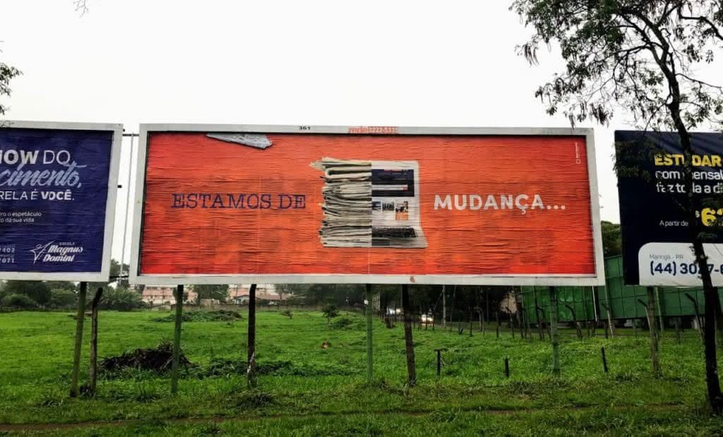 De mudança Angelo Rigon 7 anos atrás Esta propaganda em outdoor tem feito o pessoal de comunicação se perguntar: qual o jornal que deixará de ser impresso? PS – A possibilidade é de que a mudança para o digital envolva algum impresso de segmento, como o de classificados.
