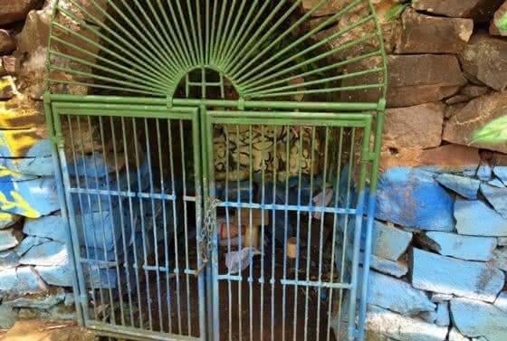 A antiga gruta que abrigava a imagem de Nossa Senhora da Glória, dentro do Parque do Ingá, agora tem um morador.