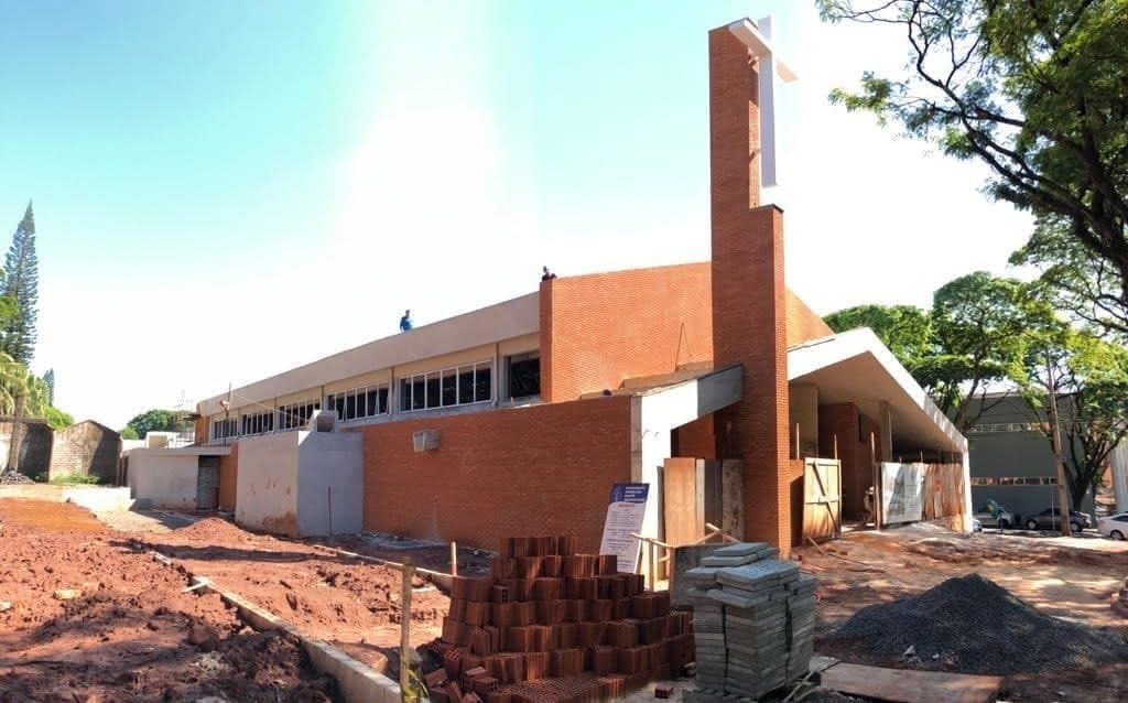 Em andamento Angelo Rigon 7 anos atrás As obras da nova Igreja Cristo Ressuscitado, na Zona 5, começam a entrar na fase final. Foto de Marco Antonio Deprá.