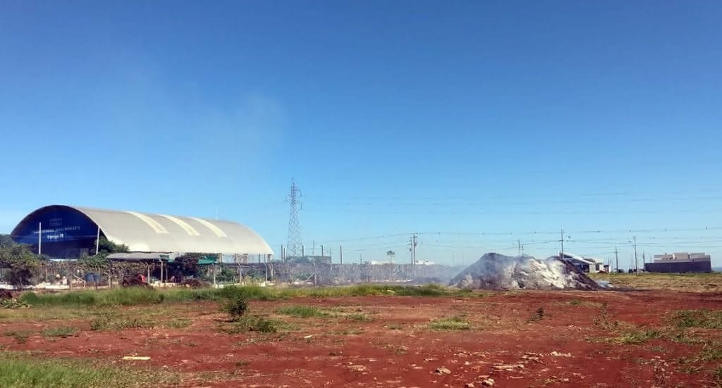 Um grande monte com resíduos de grama cortada pela Prefeitura de Maringá queimou durante três dias, segundo leitor que enviou a foto, ao lado horta municipal, ao lado do Colégio Adaile Marioa Leite, no Jardim Liberdade.