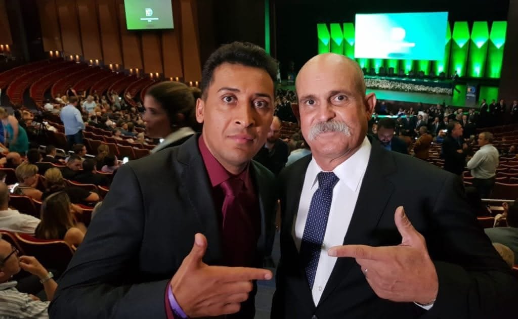 No Teatro Positivo Angelo Rigon 7 anos atrás Pouco antes do início da sessão de diplomação, os maringaenses Soldado Adriano José e Sargento Fahur com o tradicional gesto da campanha eleitoral.