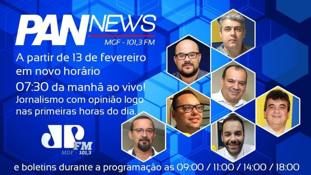 Em novo horário Angelo Rigon 7 anos atrás A partir de amanhã o Pan News da Jovem Pan Maringá vai ao ar a partir das 7h30.