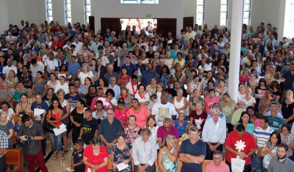 O prefeito Walter Volpato e sua mulher, Lúcia, participaram da missa. A primeira-dama recebeu agradecimentos do padre Everaldo, da Paróquia Nossa Senhora da Esperança, por ter se empenhado na busca de recursos e doações para a recuperação daquela estrutura.
