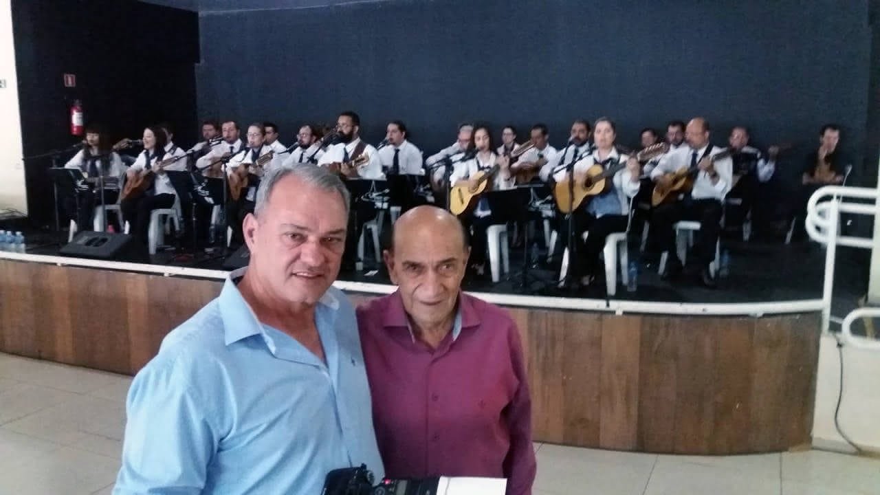 O fotógrafo José Carlos Ronchin e Verdelírio Barbosa, ontem, no parque de exposições, na comemoração do aniversário duplo: o dos 28 anos de existência do Jornal do Povo e do natalício do jornalista maringaense.