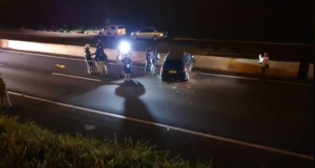 Mais um acidente inusitado no Contorno Norte. Um veículo Honda Fit vinha da avenida Antonio Franco de Morais (das Torres), passou direto sobre o guard rail na via marginal e caiu; por pouco ele não atravessou as duas pistas da BR-376.