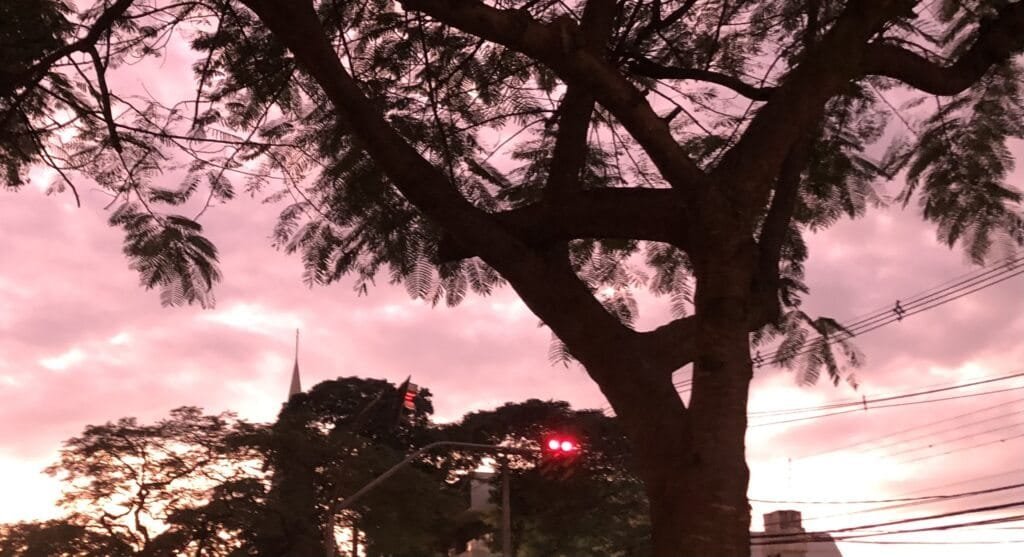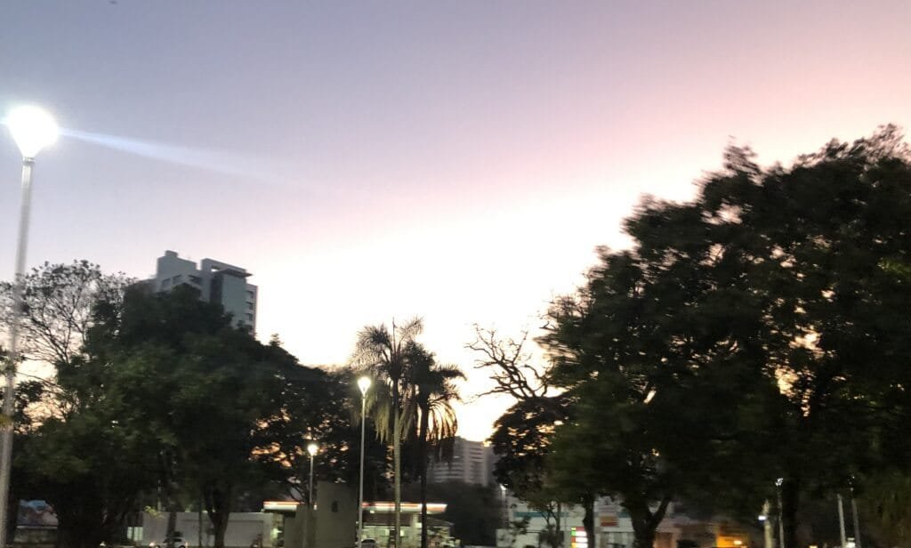 Quinta-feira de céu claro, e de acordo com o Simepar com temperatura máxima alcançando 28˚C e pôr do sol às 18h04.