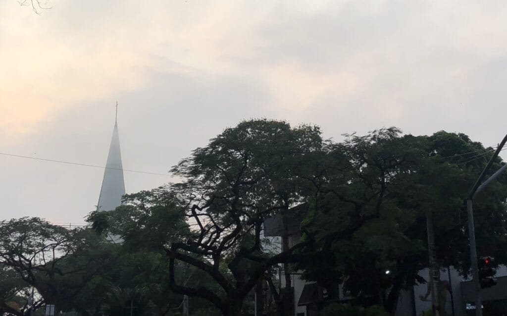Quinta-feira de tempo parcialmente nublado, com pancadas de chuva, e de acordo com o Simepar com temperatura máxima de 31˚ C.