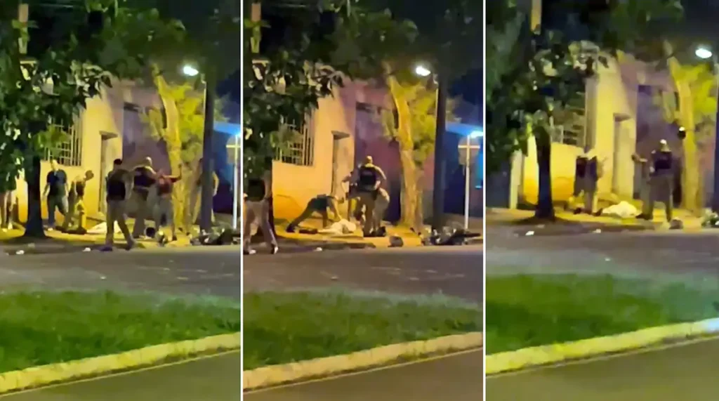 Chutes, socos e capacetadas na cabeça de um rapaz em abordagem da PM ontem à noite em Maringá