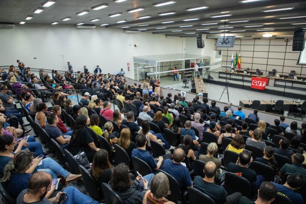 Assembleia (a foto é da realizada dia 28) registrou momentos tensos entre servidores, que querem a prometida equiparação para as categorias que realizam os mesmos afazeres