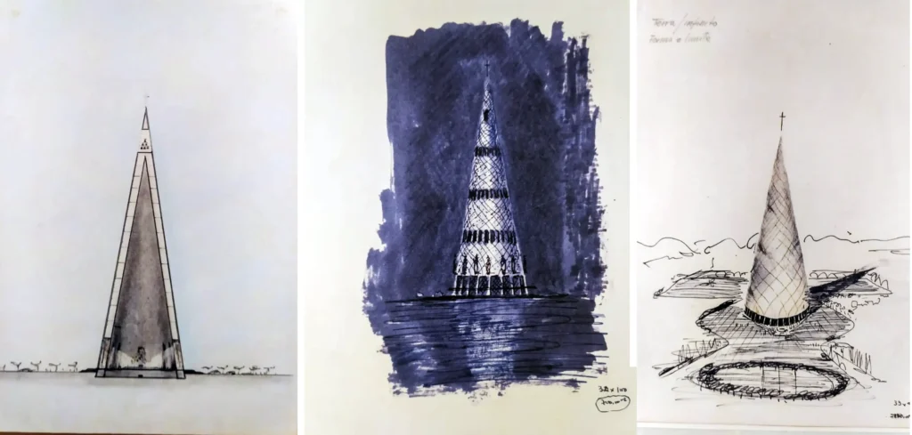 JC Cecílio foi certamente o único maringaense a comparecer à exposição e fez registros interessantes. Aqui, além da Catedral, Bellucci projetou, entre outros, o Grande Hotel (Hotel Bandeirantes, hoje tombado mas fechado) a praça Napoleão Moreira da Silva, que teve o projeto original desfigurado, e a praça Regente Feijó, na Vila Operária.