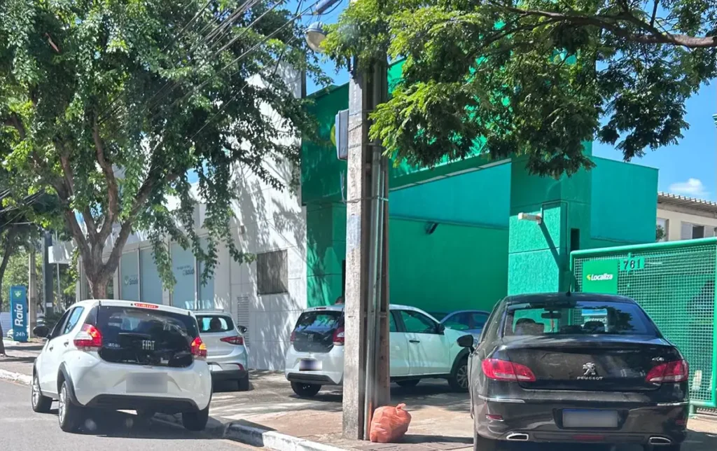 E próximo à prefeitura, diz leitor que reside nas proximidades, “não tem jeito mesmo, a empresa de locação de carros comprou as calçadas e a rua também pois nesse horário nem pode estacionar”.