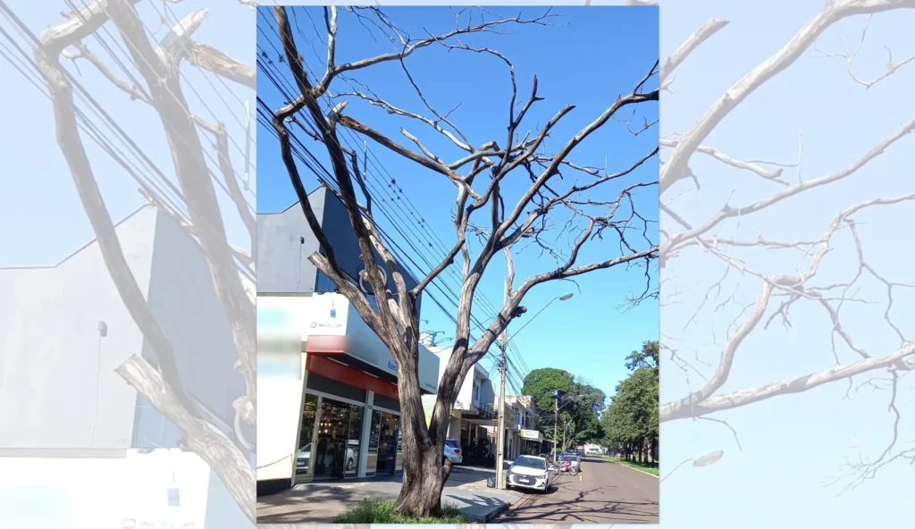 Mais uma árvore seca na cidade árvore, onde não é incomum o envenenamento com produtos químicos