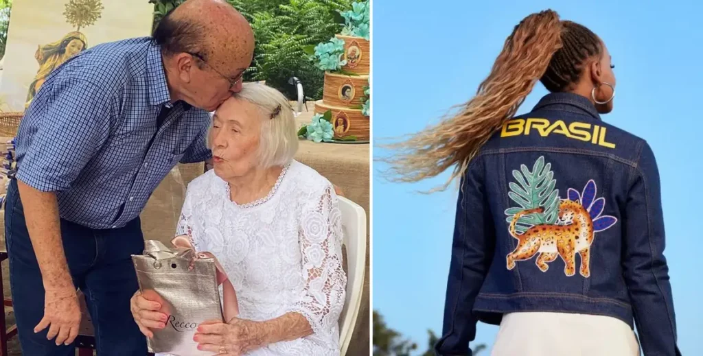 Dr. Manoel Sobrinho com dona “Lalá” em Serra Negra do Norte, e a jaqueta feita em cidade vizinha que vai estar na abertura das Olimpíadas 2024