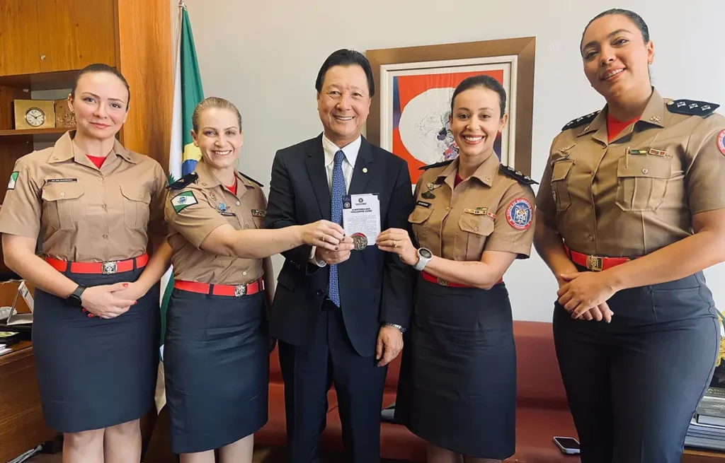 O deputado federal recebeu esta semana do Corpo de Bombeiros Militar do Paraná a challenge coin, símbolo poderoso de unidade, honra e camaradagem. Foi-lhe entregue pela capitã Ericka, capitã Ivna, subtenente Patricia e soldado Garbosa.