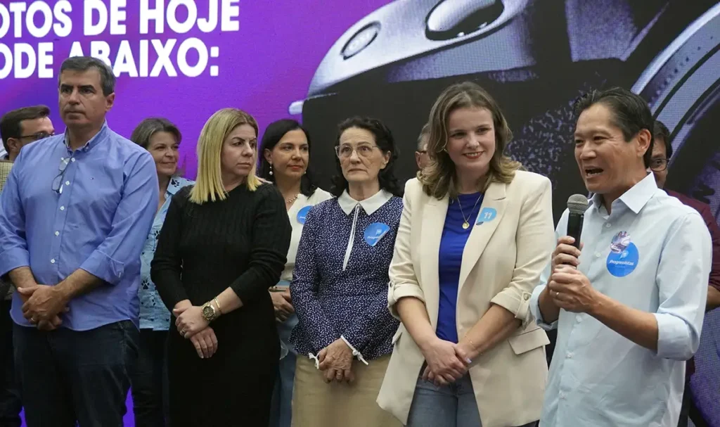 A professora Maria Tereza disputará a prefeitura, com o vereador Eduardo Tominaga (PP) como vice-prefeito na chapa