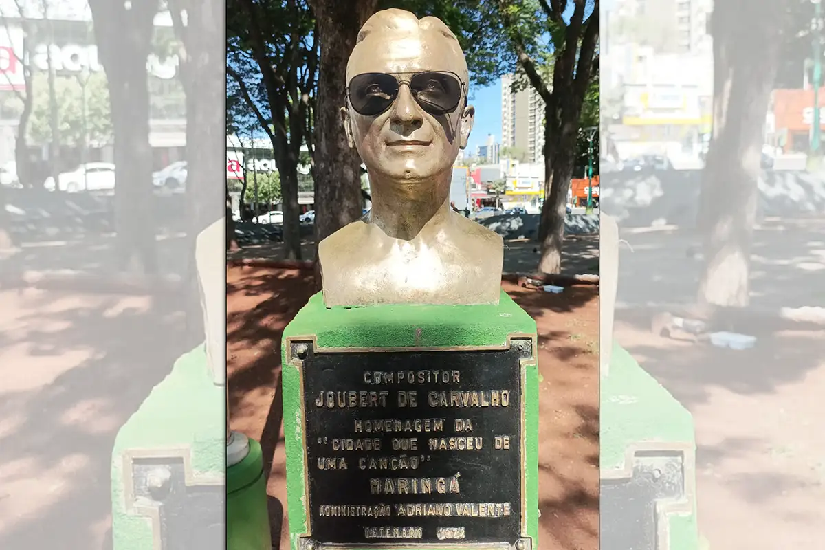 E o busto de Joubert de Carvalho, autor de “Maringá”, estava a cara de Tom Cruise em “Top Gun”, ontem, na praça Raposo Tavares. Foto de Luiz Modesto.