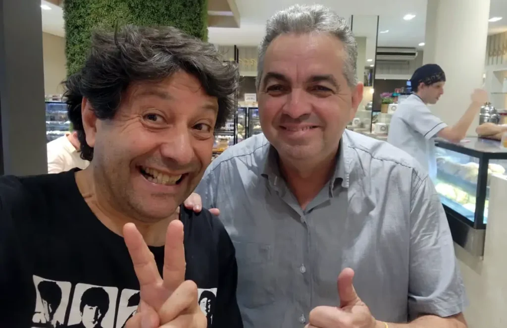 Tempo de comemorar Angelo Rigon 1 ano atrás O professor Jorge Villalobos efusivo ao lado do meu xará que elegeu-se vereador, José Angelo Salgueiro.