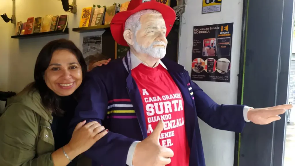 Canhota Angelo Rigon 1 ano atrás Na Canhota Mercearia & Bar, na Treze de Maio, Bixiga, São Paulo (SP), o boneco de Lula com a camiseta: “A casa grande surta quando a senzala aprende a ler”. Foto de JC Cecílio.