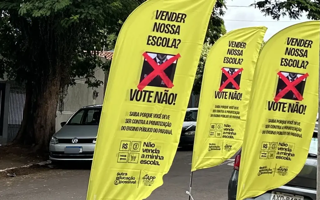 Enquanto ele defendia a terceirização, nos colégios de Maringá em que teve início a votação do tema – como no tradicional Branca da Mota Fernandes – havia manifestação contra a privatização do ensino público, pedindo o voto “não”. Confira a entrevista abaixo.