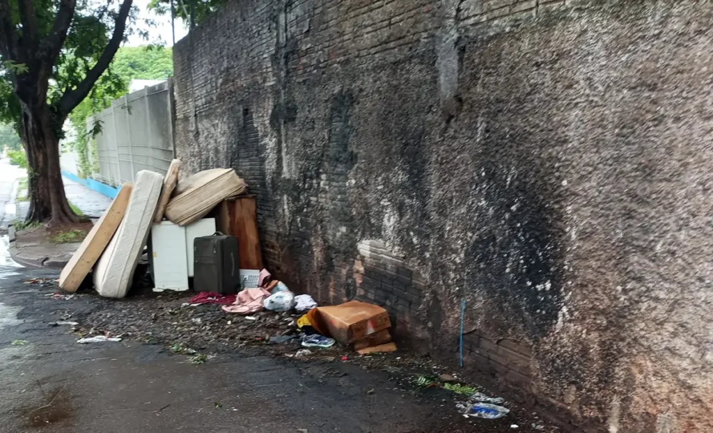 O local de desova de móveis, colchões, peças e eletrodomésticos inutilizados fica na rua Pioneiro José Tozo, atrás do Colégio Estadual Alfredo Moisés Maluf.