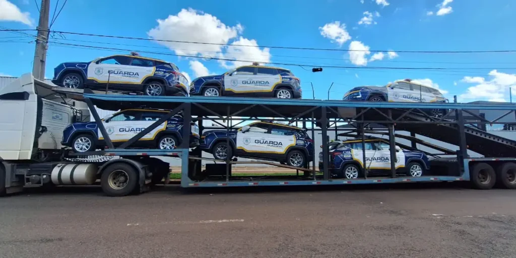 Um caminhão cegonha com seis viaturas para a Guarda Municipal de Maringá passou ontem por Maringá, já pintadas com o slogan do governo federal. Podem ser as mesmas da licitação aberta em maio, segundo a Tribuna Popular.