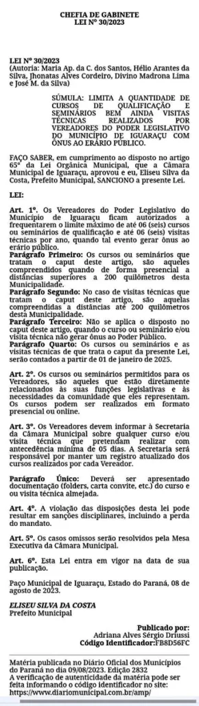 O requerimento foi feito pelos vereadores Hélio Arantes da Silva, Divino Madrona Lima e Maria Aparecida da Costa dos Santos. O blog questionou a presidente do Legislativo, mas ainda não obteve resposta. A Câmara de Iguaraçu está em recesso parlamentar desde o dia 15 até 31 de janeiro de 2025; o atendimento público foi suspenso de 20 de dezembro a 6 de janeiro.