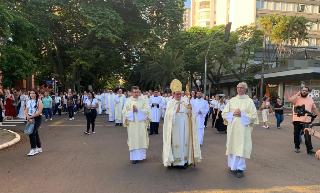 Aconteceu nesta tarde em Maringá celebração eucarística com peregrinação na região central da cidade. A procissão dos peregrinos passou por avenidas centrais, próximas à Catedral de Nossa Senhora da Glória, na abertura do Ano Jubilar da Igreja Católica em Maringá, com dom Frei Severino à frente.
