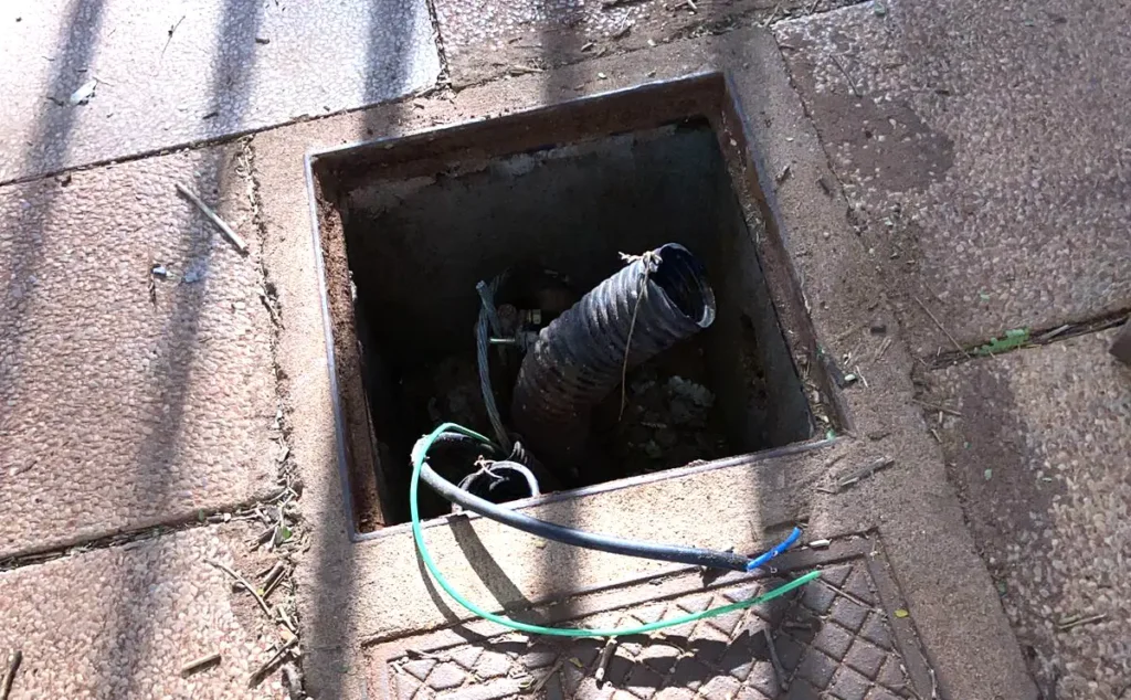 Constatou-se na manhãs de hoje o furto de toda a fiação na calçada defronte o alojamento da Vila Olímpica, ao lado da Secretaria de Esportes e Lazer, e do Restaurante Popular, na avenida Duque de Caxias, Zona 7. Não há segurança noturna no complexo.