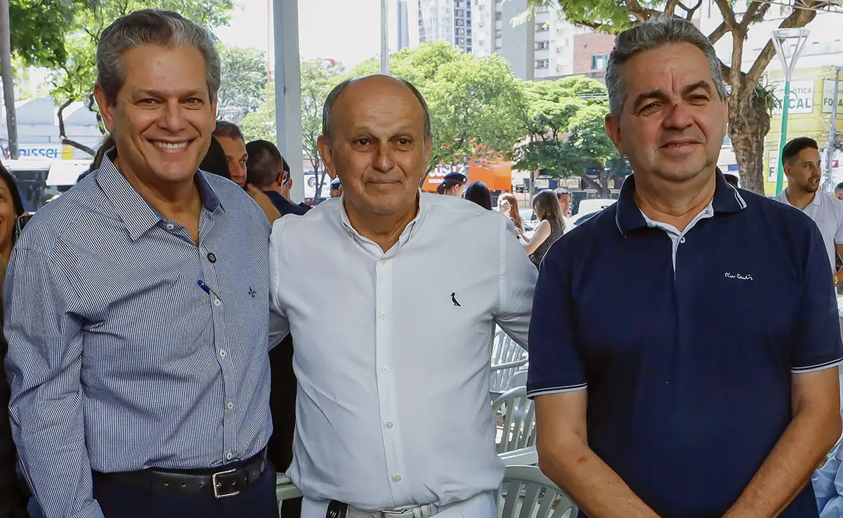 O chefe regional da Casa Civil, Dr. Batista – na foto entre o prefeito Silvio Barros II (PP) e o vereador José Angelo Salgueiro (Pode) – participou da cerimônia de troca de comando da Guarda Civil Municipal, na quarta-feira.
